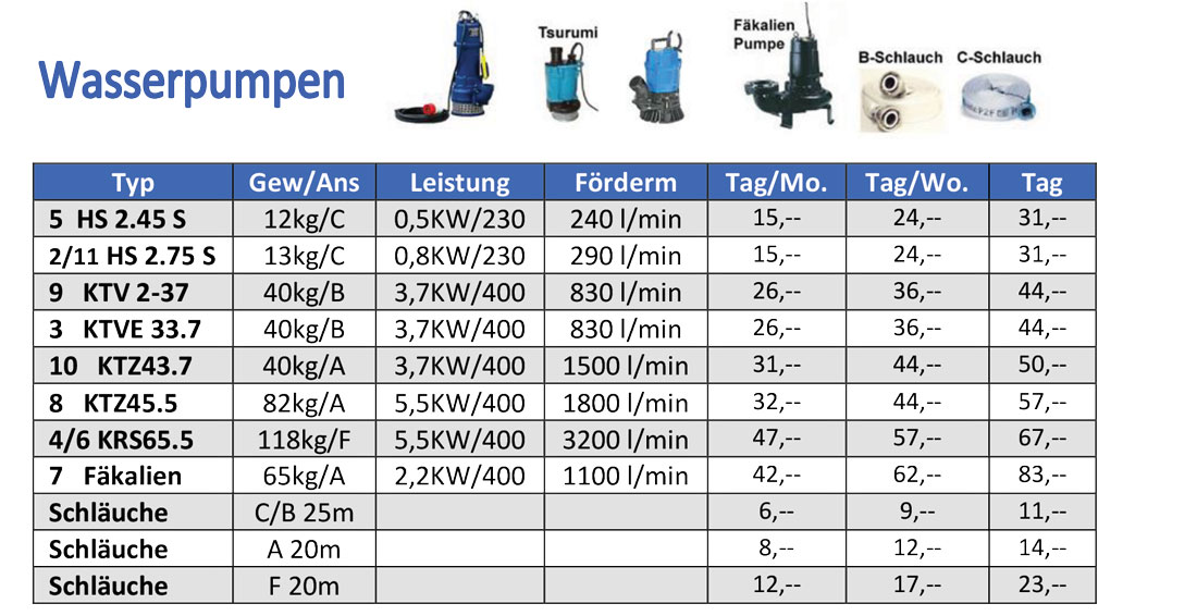 Sie benötigen eine Wasserpumpe oder Reinigungsgeräte für Ihre nächste Baustelle? Bei Fercher Baumaschinen helfen wir Ihnen gerne. Wir führen eine breite Auswahl an Wasserpumpen und beraten Sie gerne über den richtigen Einsatz unserer hochmodernen Wasserpumpen. Rufen Sie uns noch heute an und mieten Sie Ihre Wasserpumpe. Wir freuen uns von Ihnen zu hören!